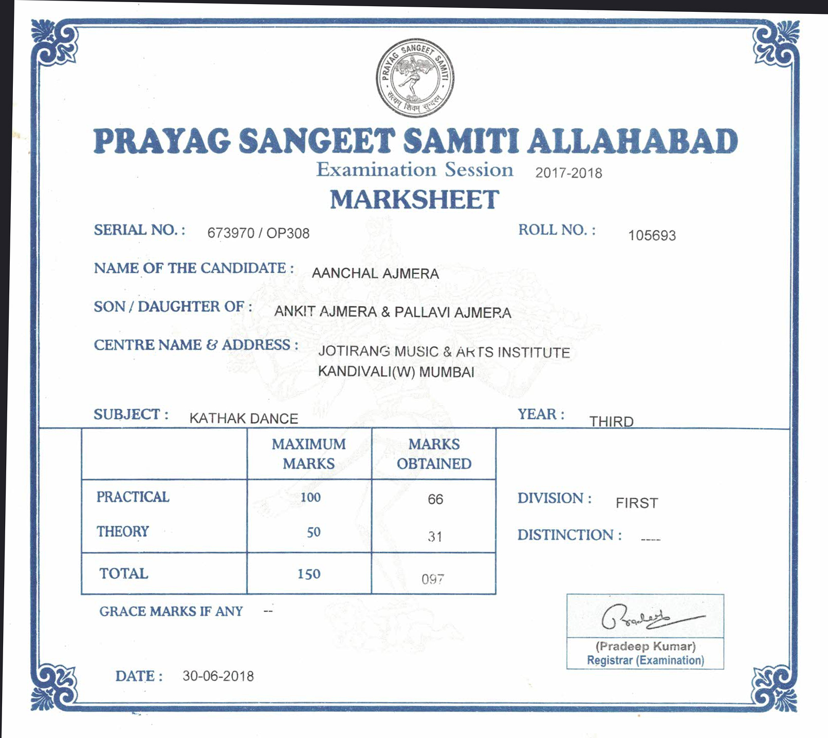 2016-2017 Marksheet